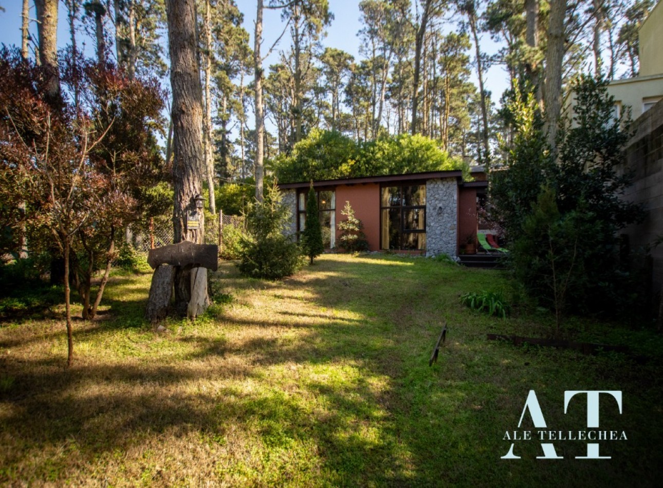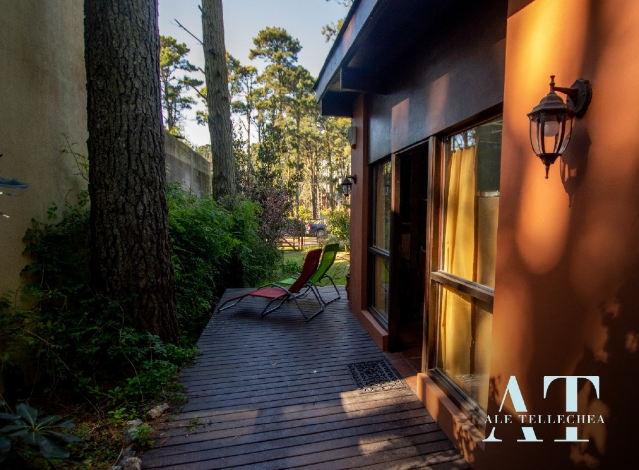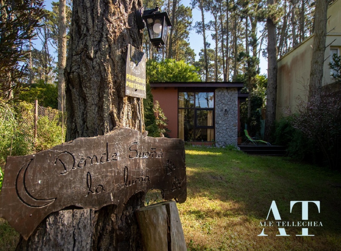 Espacios Exteriores: Cuenta con un amplio lote de 300 m² donde destaca su deck de madera con parrilla, el corazón de las tardes de verano en el bosque.