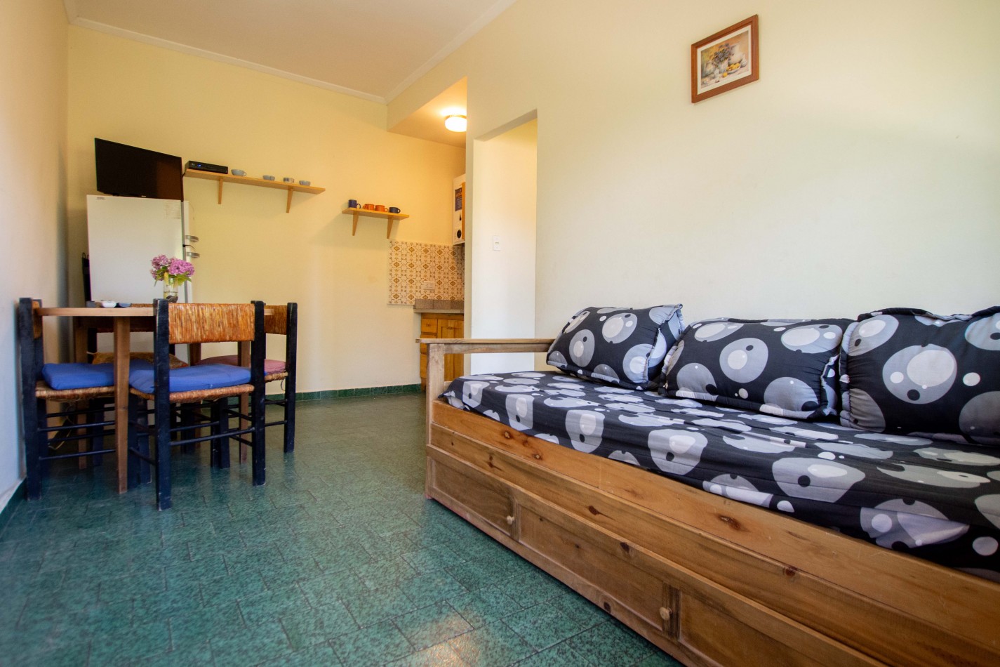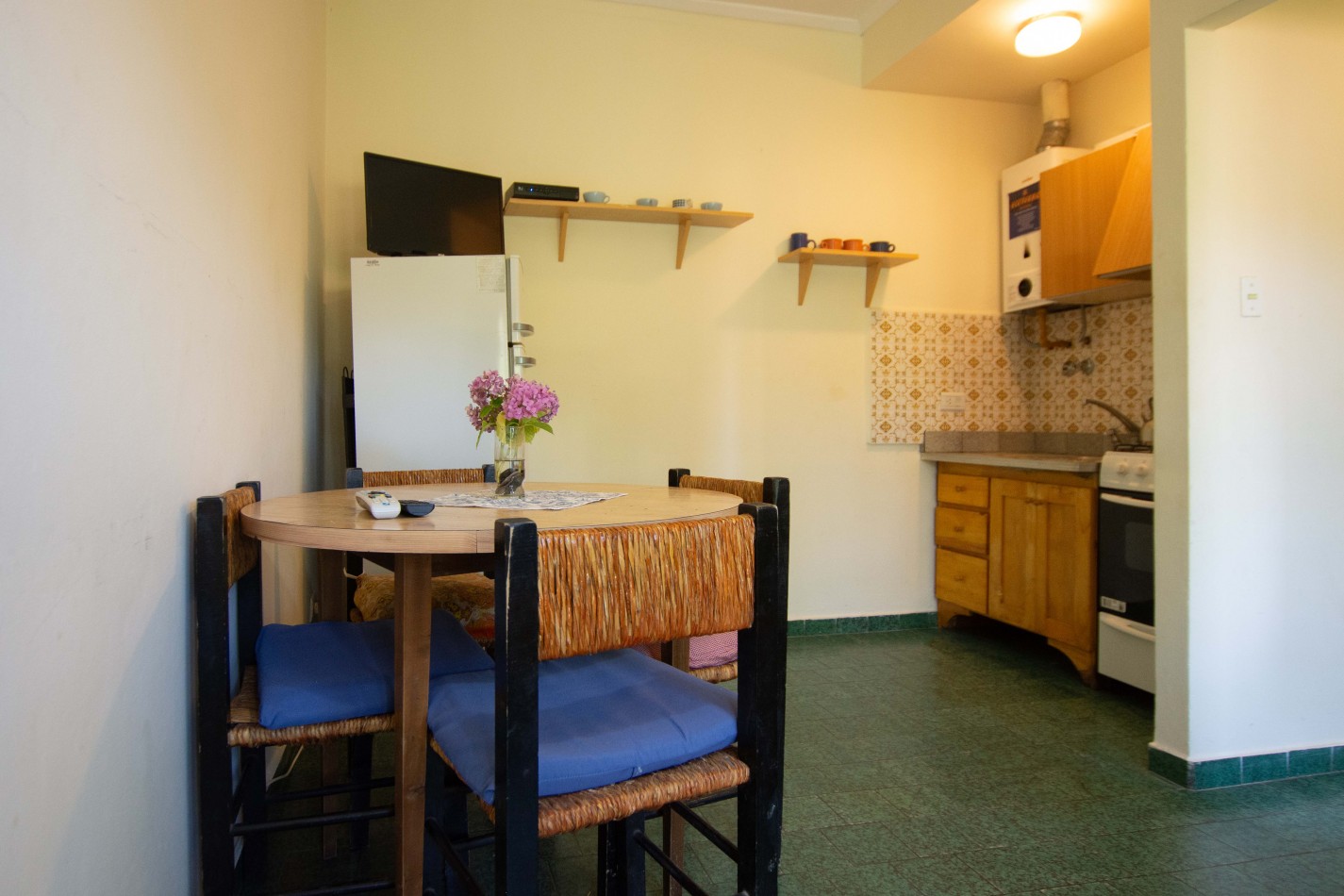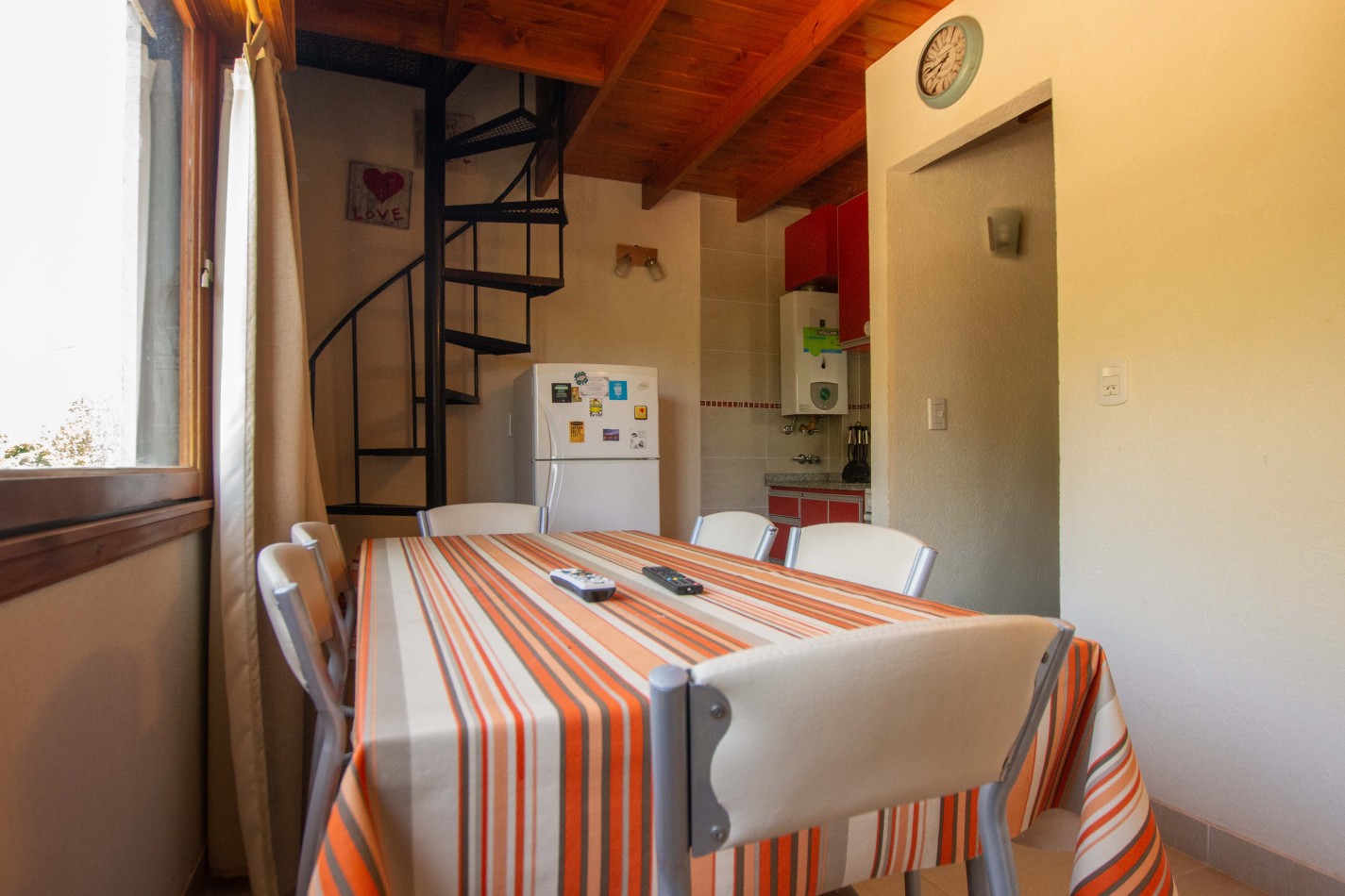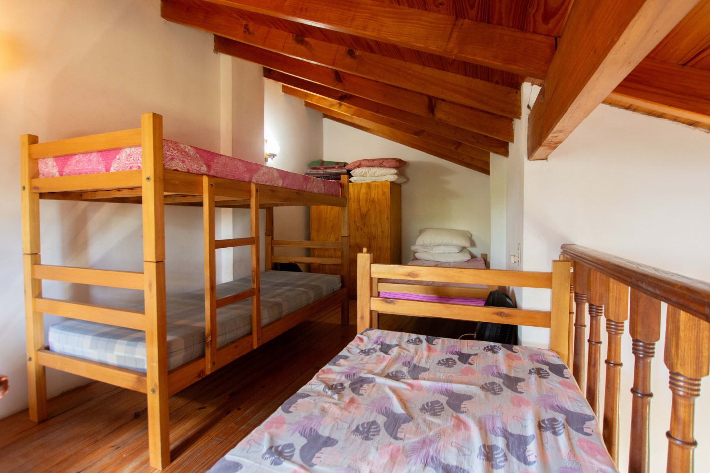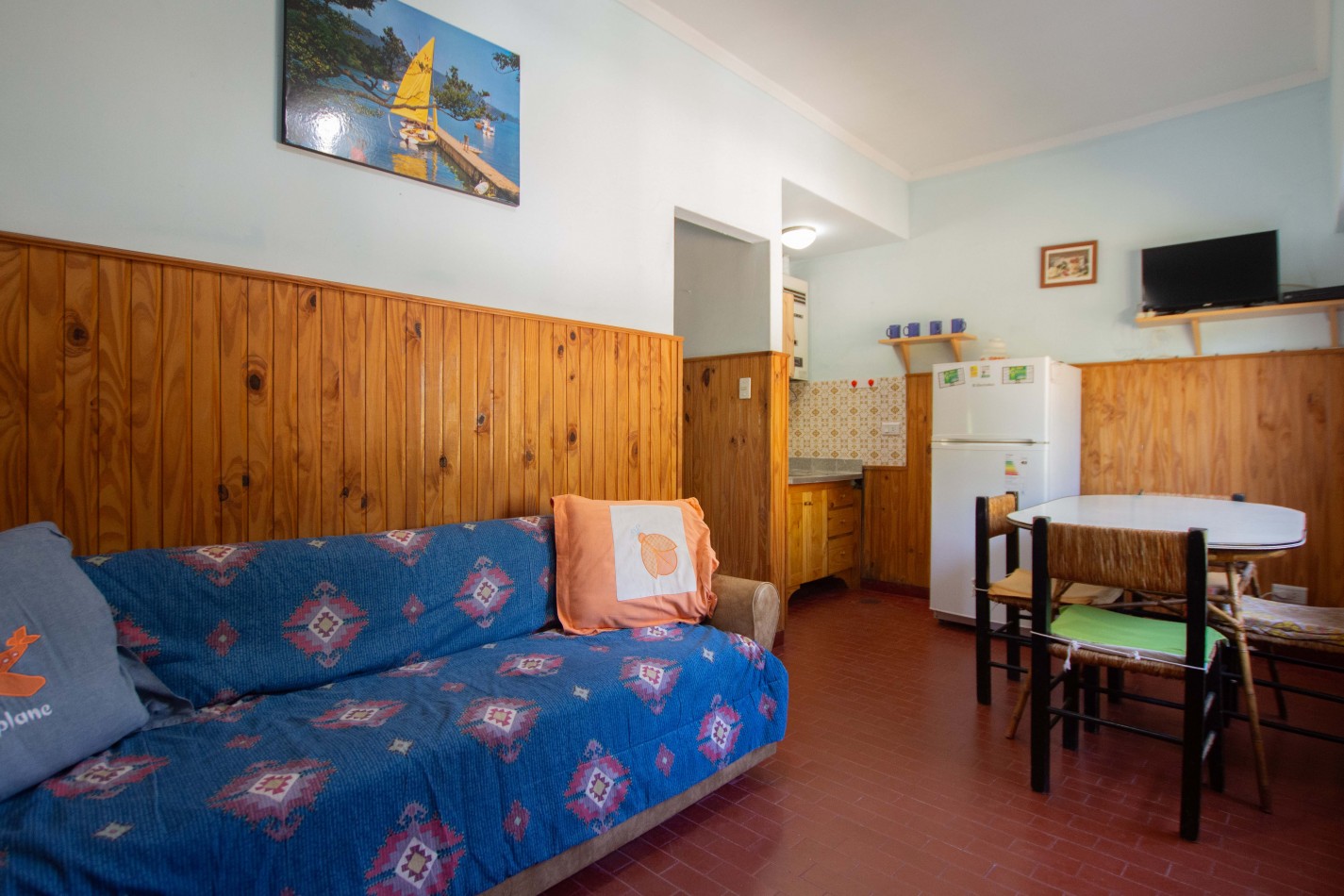 Heladera / Cocina / Calefón (gas envasado) / Cama matrimonial / Mesa y sillas / Sofá cama / Camas en altillo