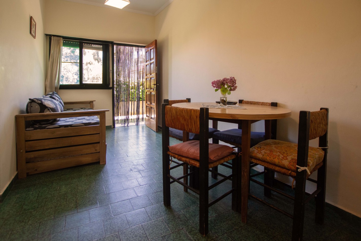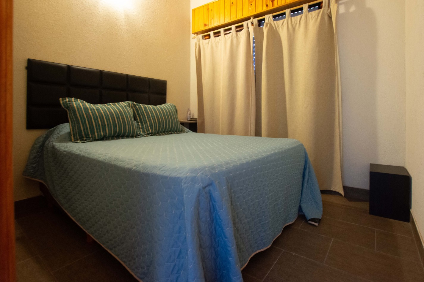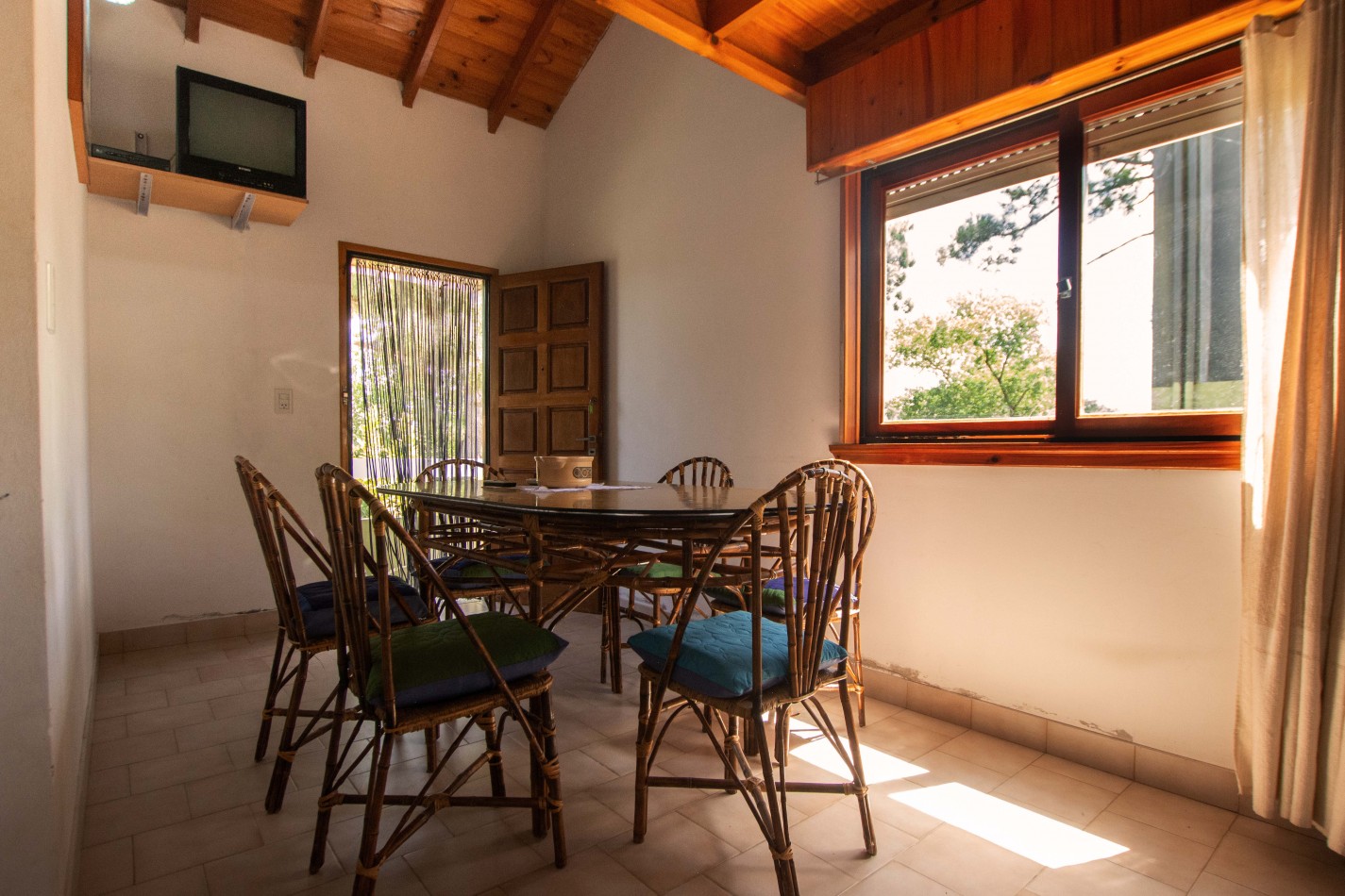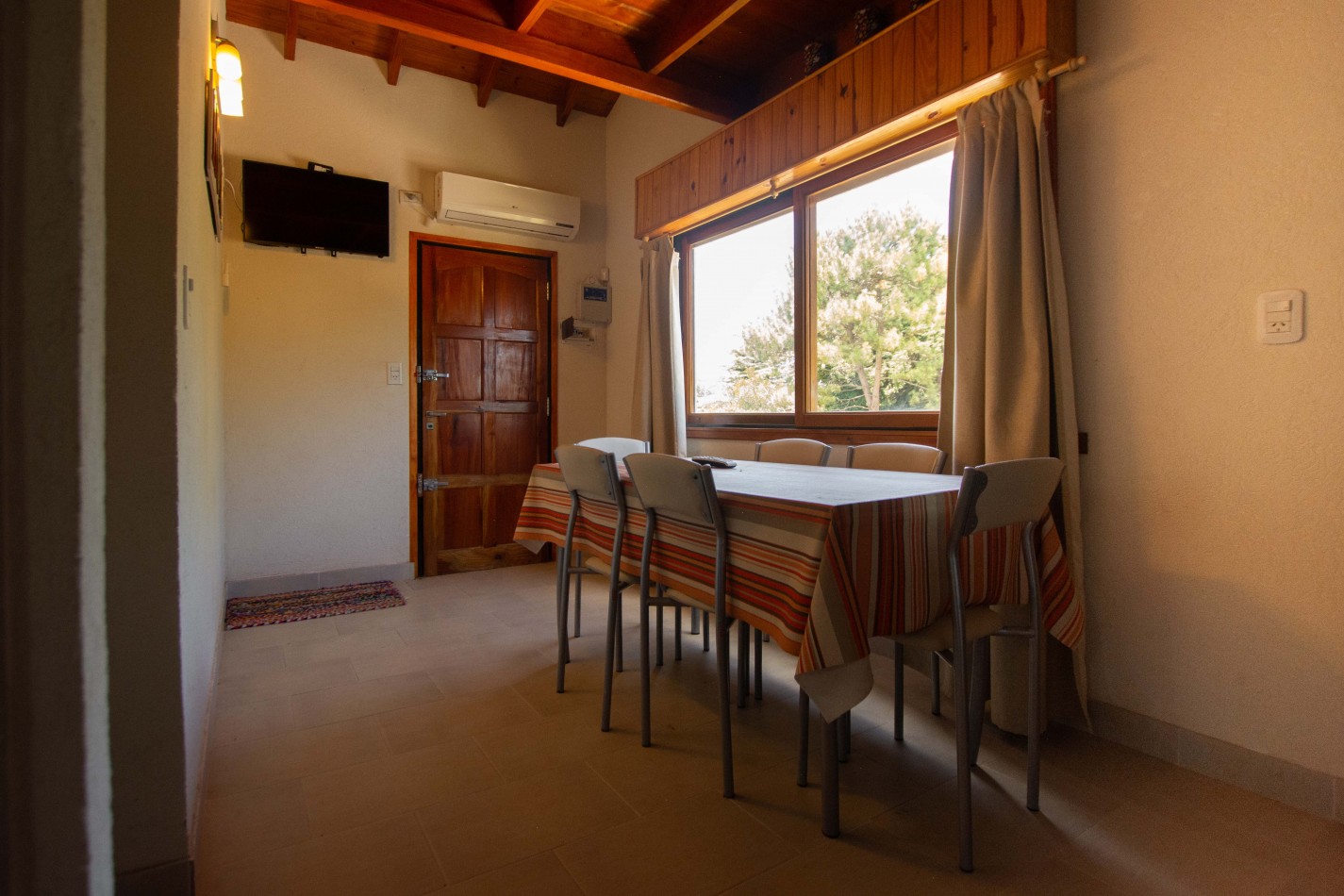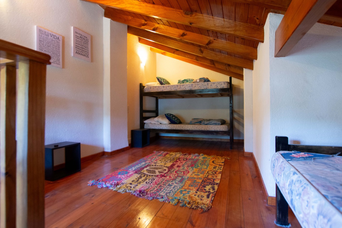 Heladera / Cocina / Calefón (gas envasado) / Cama matrimonial / Mesa y sillas / Sofá cama / Camas en altillo